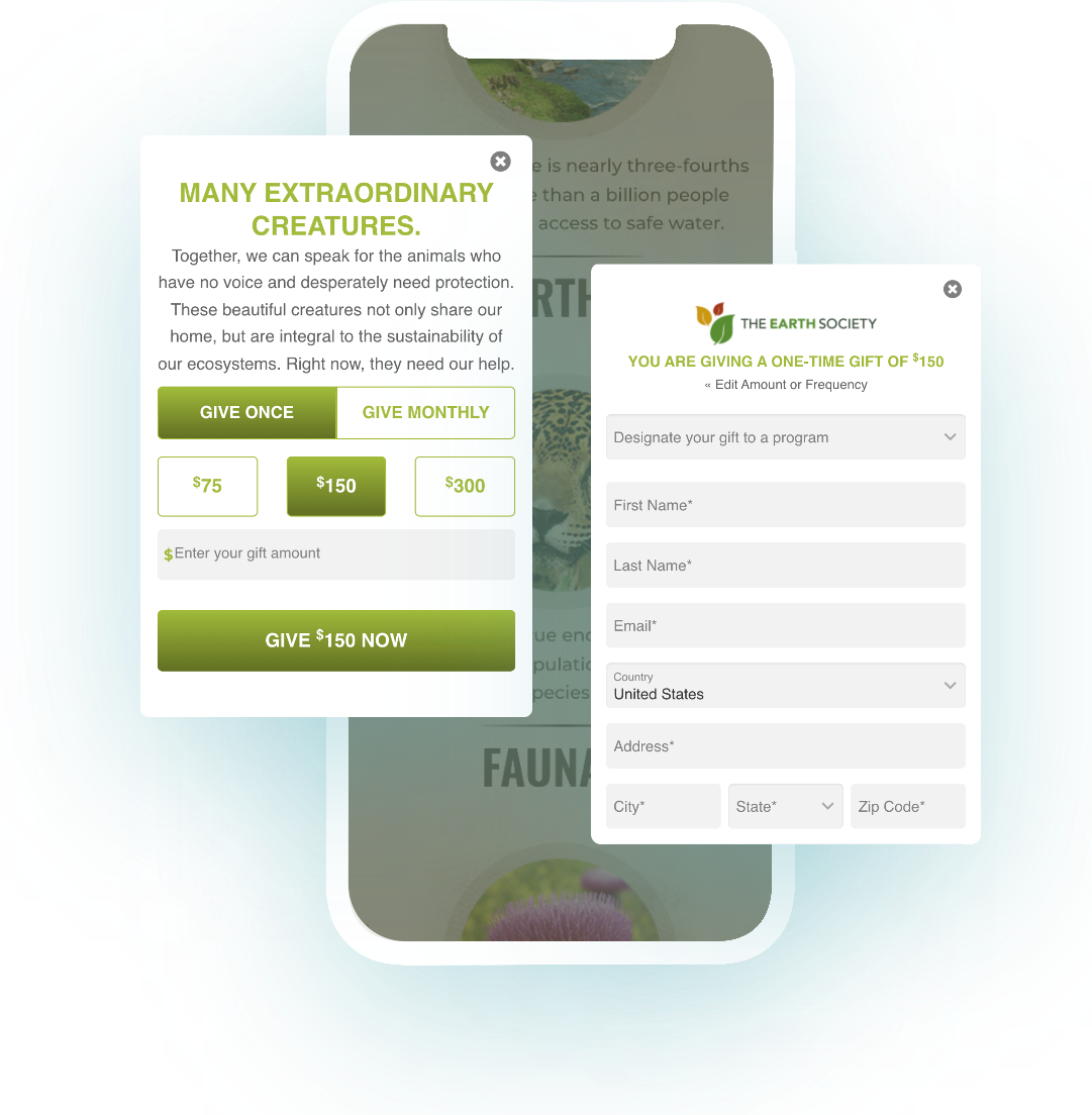 Integrate donation forms anywhere you need on your website without having to take the donor to an entirely separate page just for giving. Donors can give within the context of what they are reading without having to navigate away from that page.